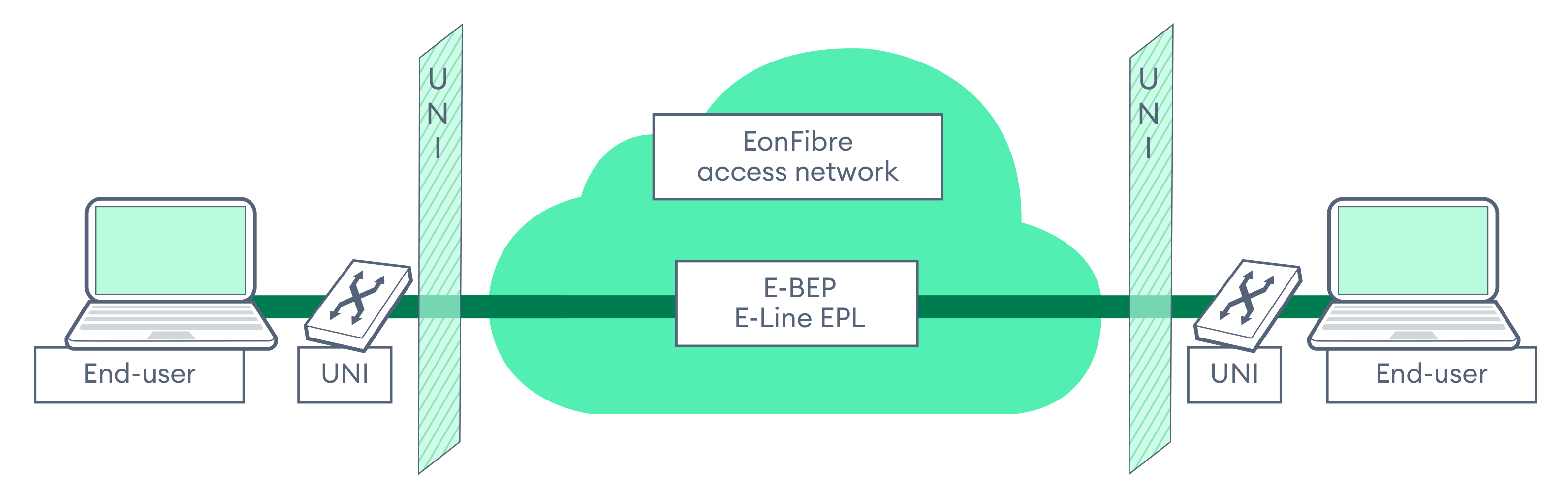 The EonFibre Business Ethernet Premium service is a point-to-point, dedicated Ethernet solution designed to connect endpoints within and between major New Zealand cities, including Auckland, Wellington, and Christchurch, via our own terrestrial fibre-based access networks.